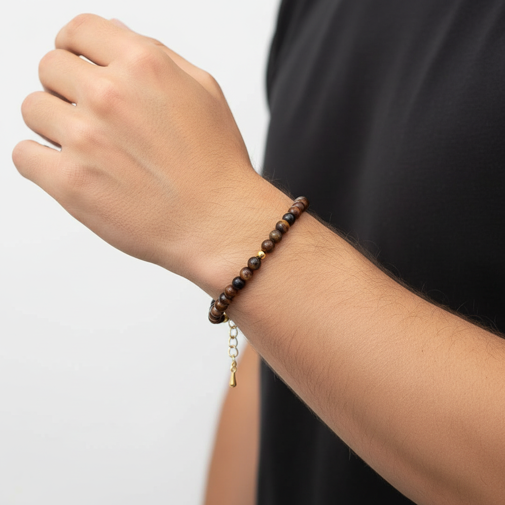 Edles Armband aus Naturstein mit vergoldeten Silberperlen
