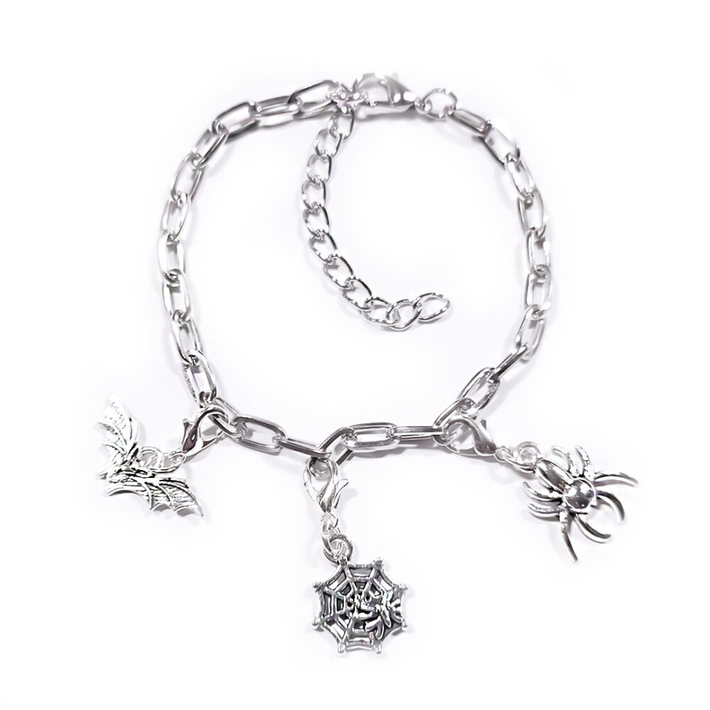 Dieses versilberte Glieder-Armband  kommt mit  drei Themen-Charm-Anhängern inklusive.