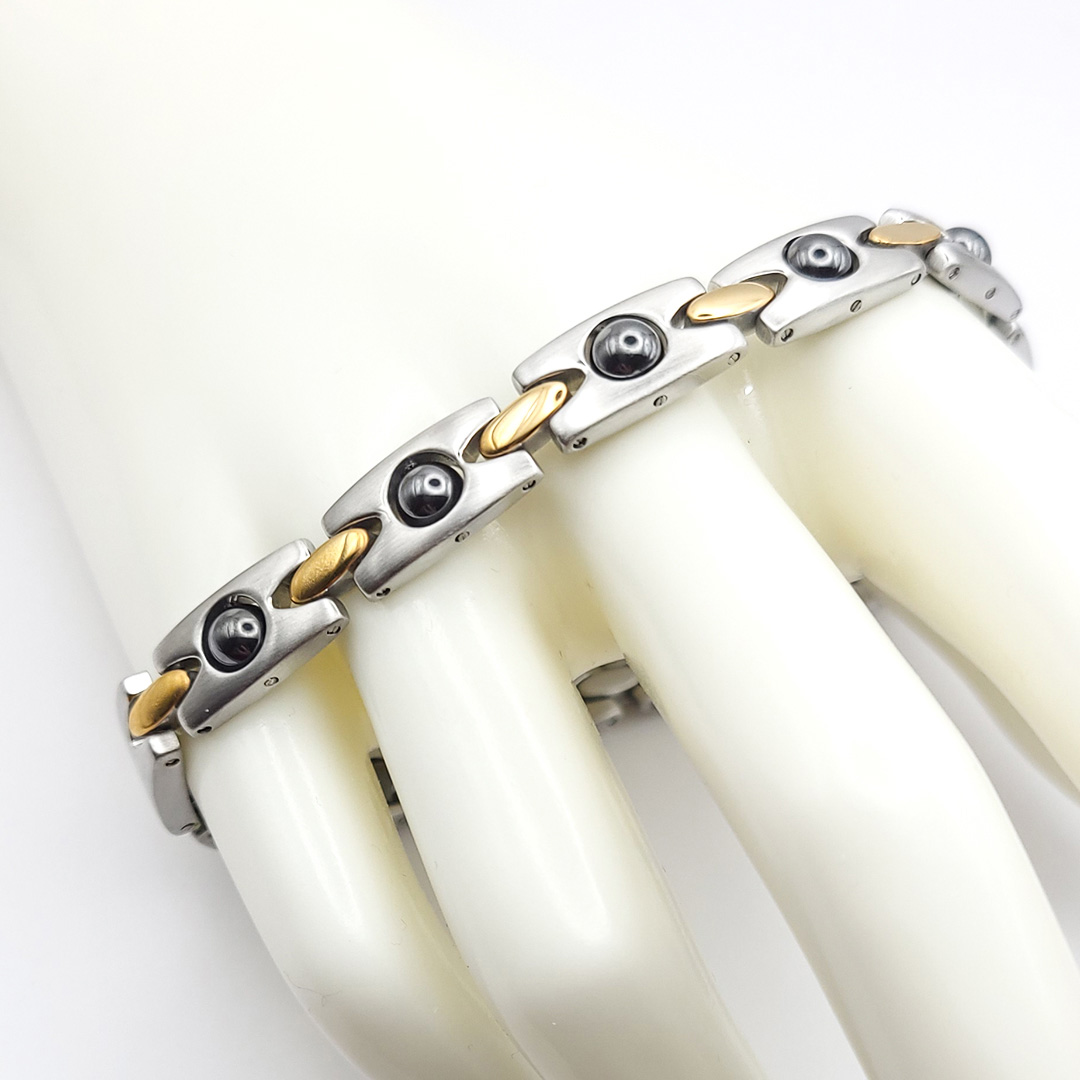 Dieses moderne Armband punktet mit seinem außergewöhnlichen Design. Das Armband besteht aus medizinischem Edelstahl und ist nickelallergenfrei.