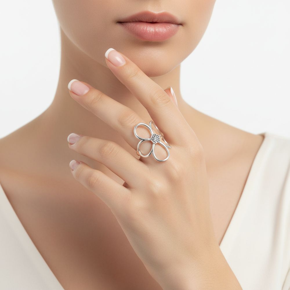 Edelstahl-Ring mit Blume