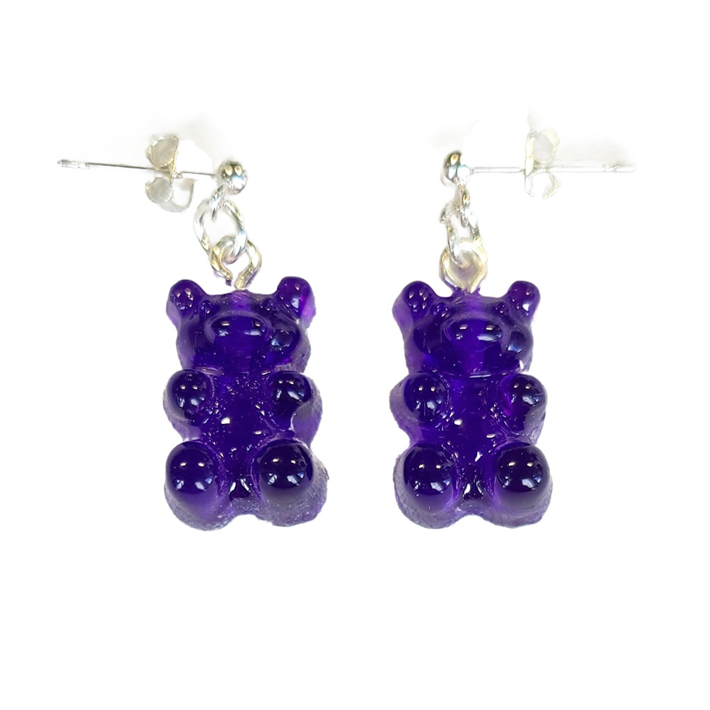 Süße lila Gummibärchen an versilberten Ohrsteckern