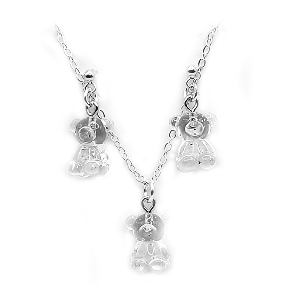 Süße Kette und ein Paar passende Ohrstecker aus transparenten Acrylbärchen