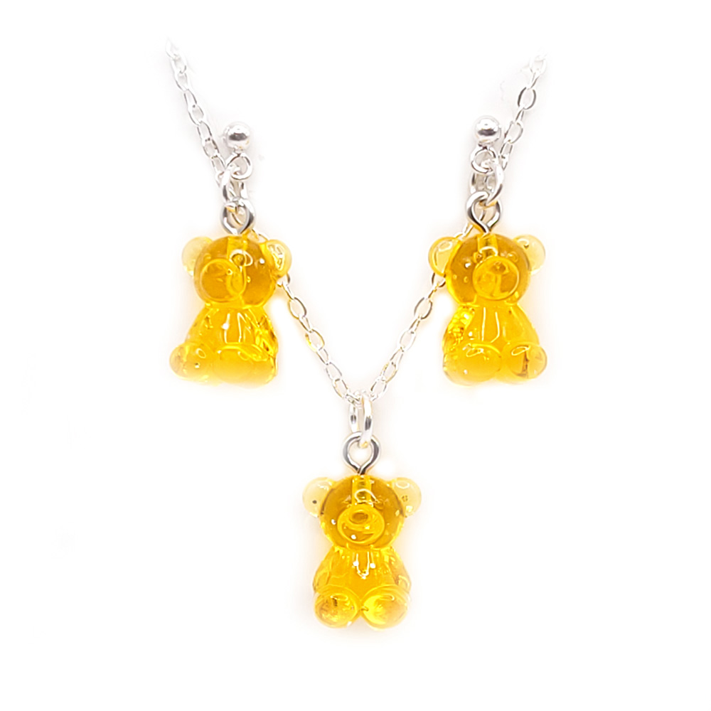 Süße Kette und ein Paar passende Ohrstecker aus gelben Acrylbärchen