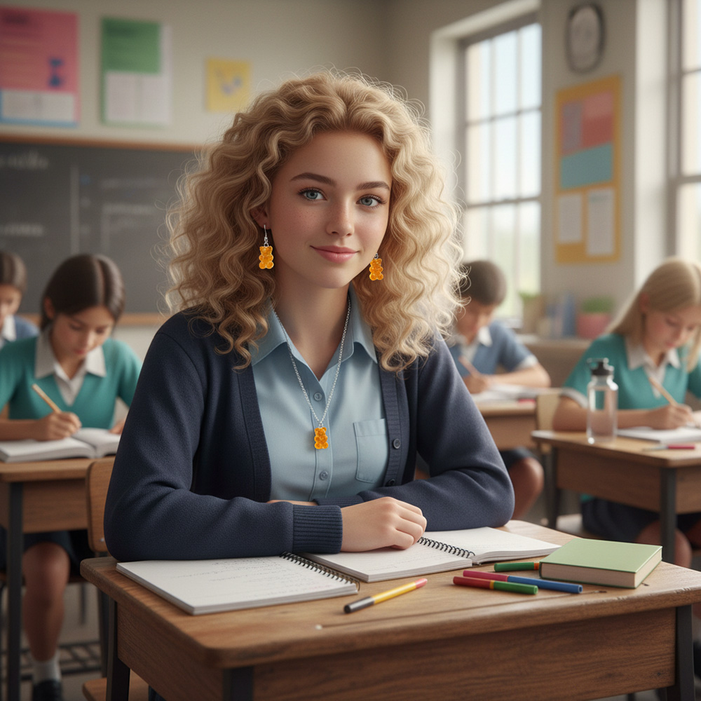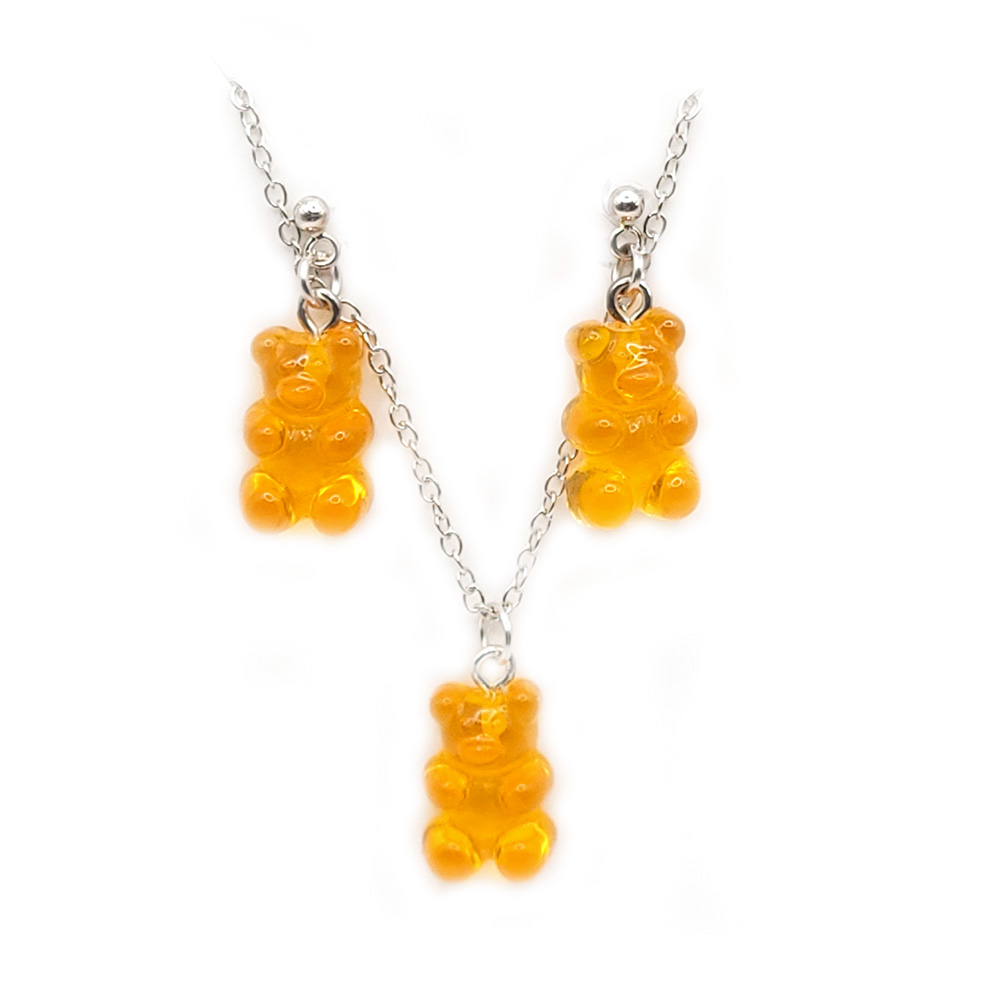Süße Kette und ein Paar passende Ohrstecker aus orangegelben Acrylbärchen