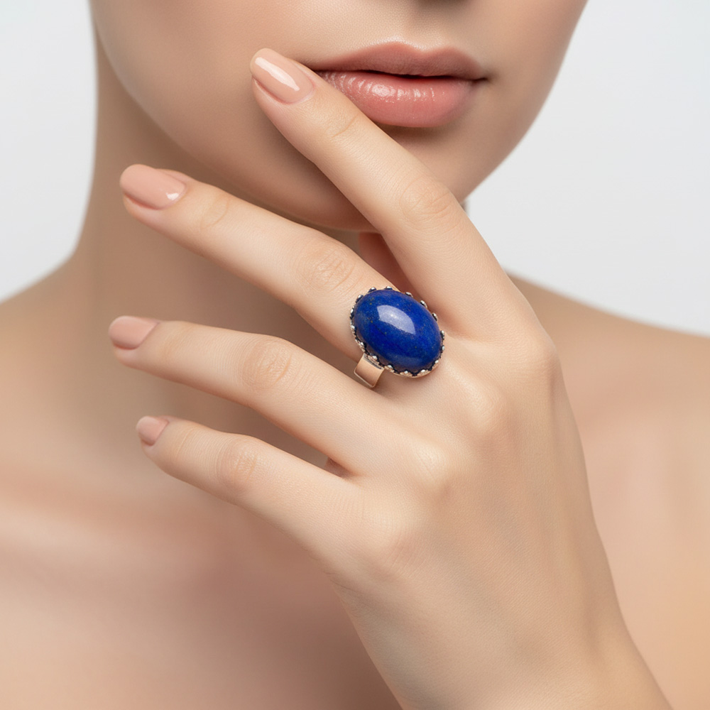 (die Produktbilder hier stellen Muster dar) - Naturstein: Lapislazuli mit Cabochon-Schliff